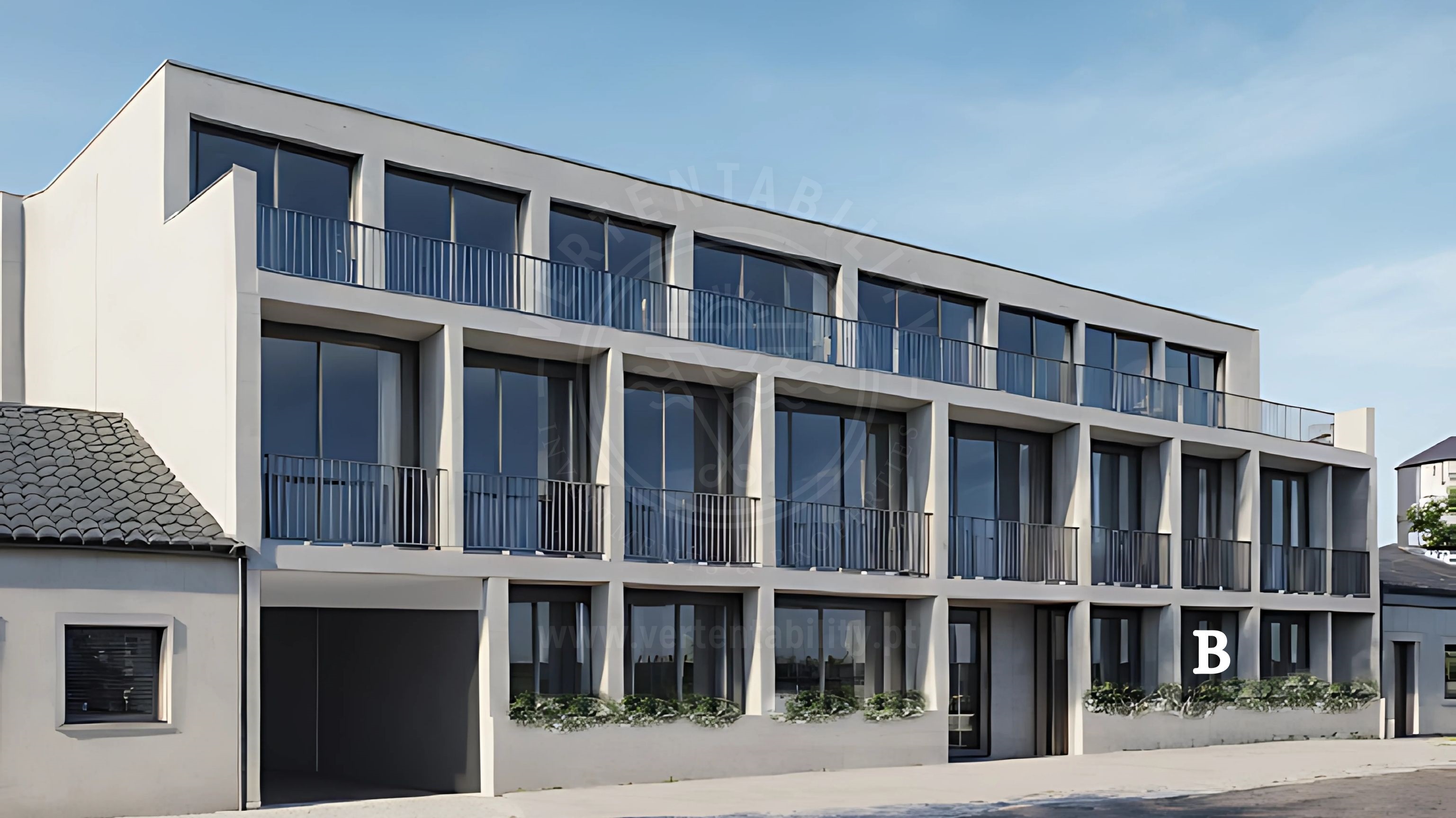 Fração B, localizada no piso 1 (rés do chão) , com uma área bruta de 97,70 m² e com exposição a Sul.